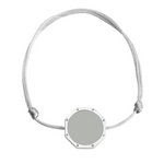 Le bracelet GUS est un bijou élégant et raffiné conçu pour mettre en valeur votre poignet. La forme octogonale de l'anneau en argent 925 confère au bracelet une apparence unique et originale. Les cordons en satin de 10 couleurs différentes viennent se fixer sur l'anneau grâce à des noeuds coulissants, ce qui permet de régler facilement la longueur du bracelet selon votre convenance.